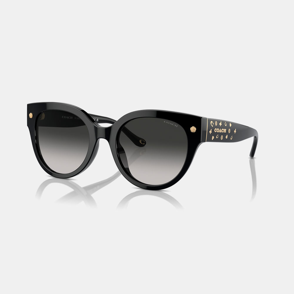 A presença de nossos elementos exclusivos nas hastes adiciona o estilo icônico da Coach e um toque de brilho a estes óculos de sol oversized. Com estrutura leve e durável, eles oferecem proteção UV completa e vêm embalados em um estojo protetor com um pano de limpeza de microfibra.